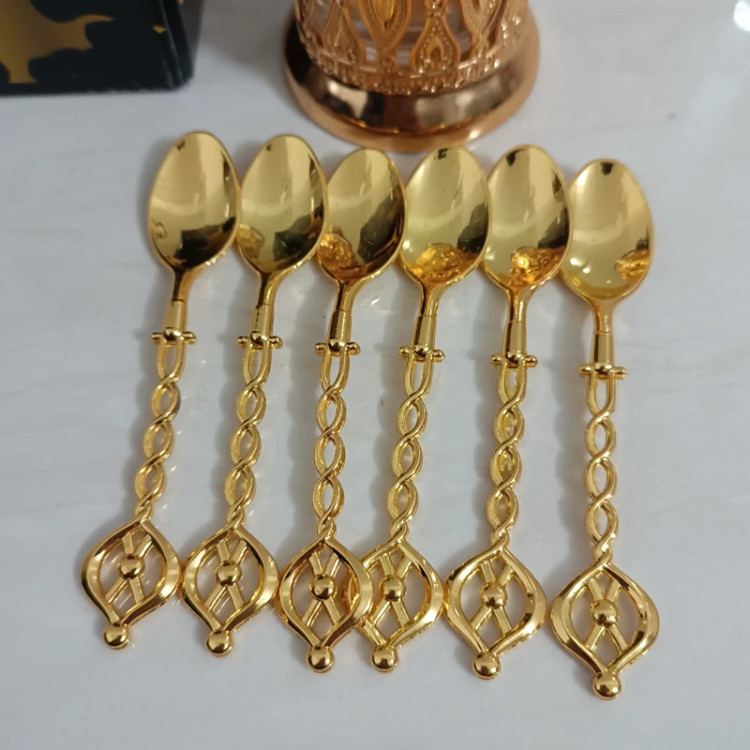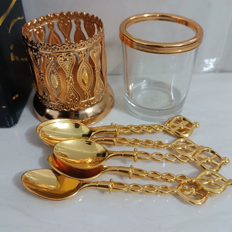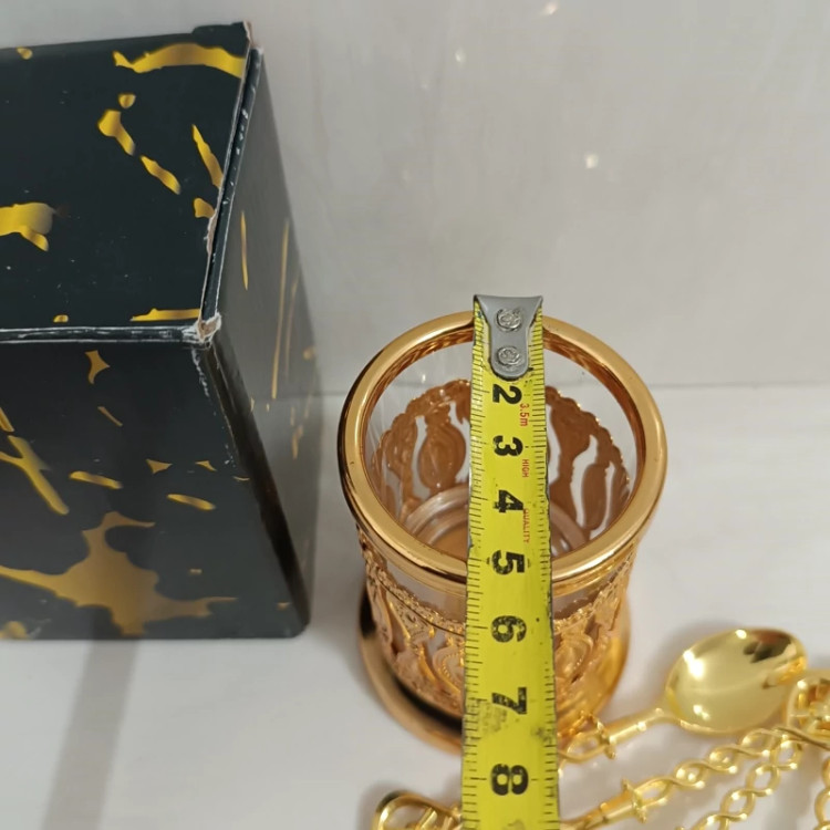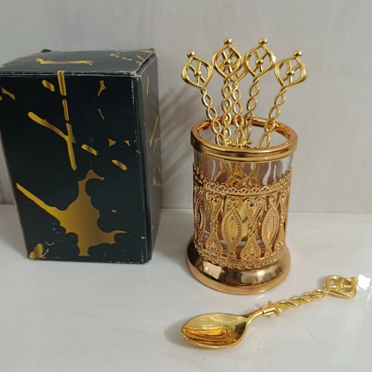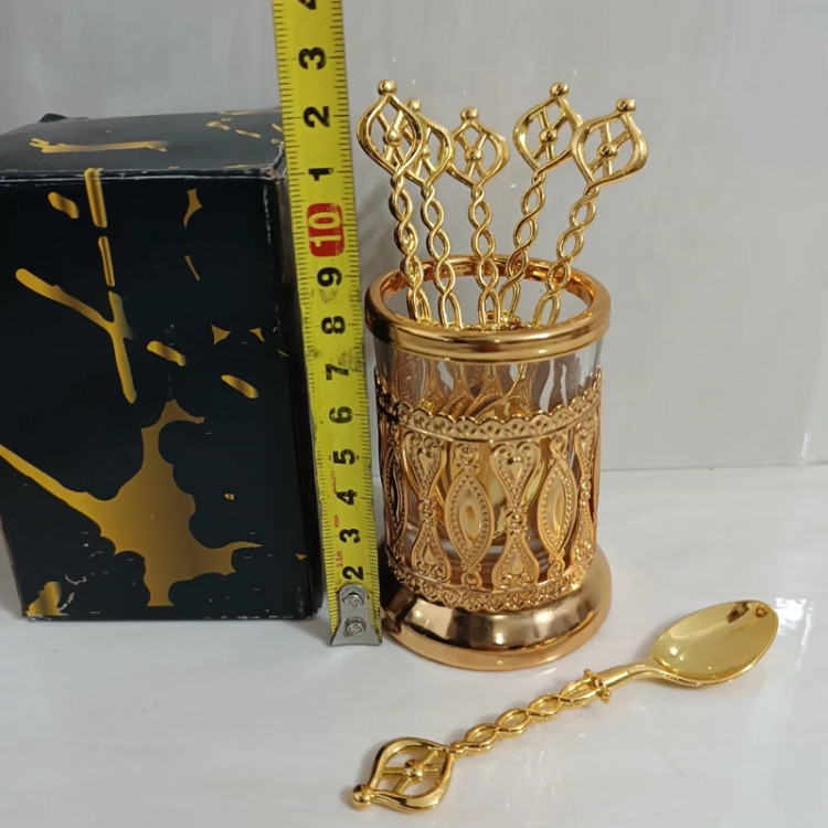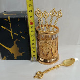 قاشق چایخوری با پایه طرح لیوانی استند دار جاقاشقی قلم کاری شده و چای خوری طلایی