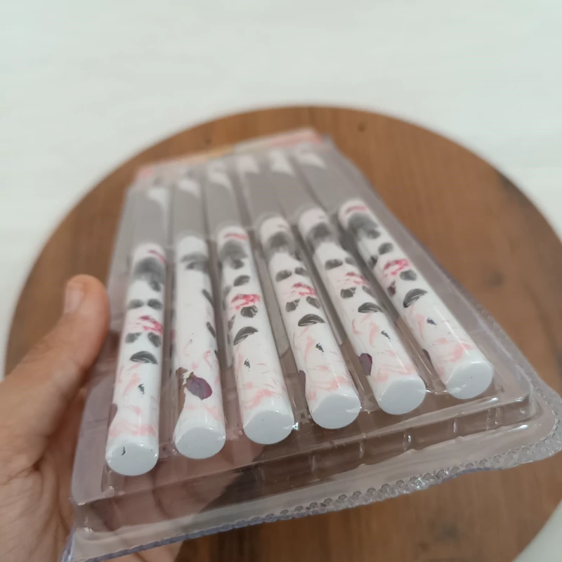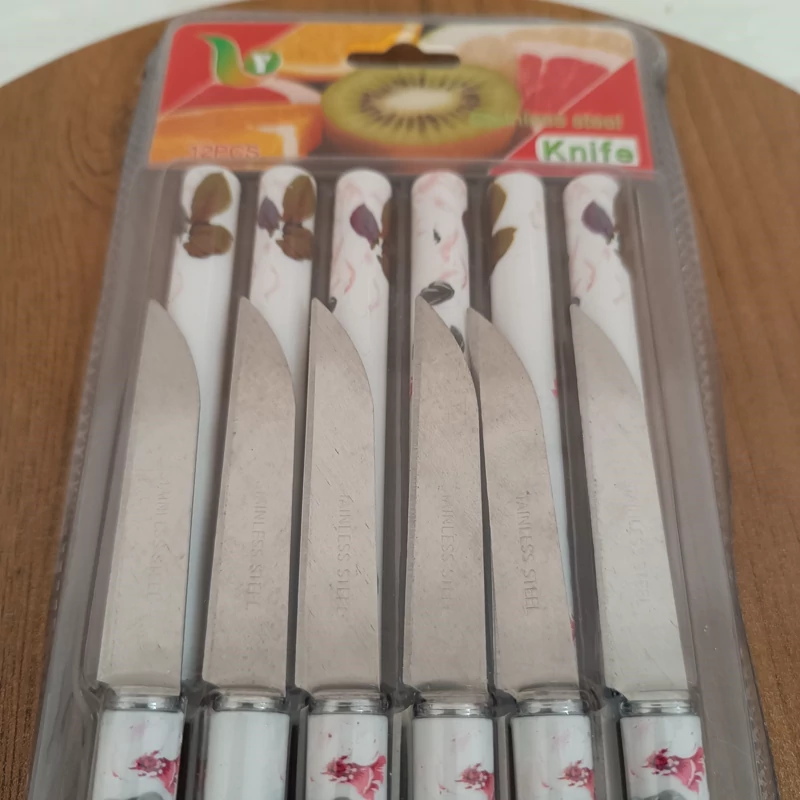 چاقو میوه خوری 12 عددی گلدار مدل لوله ای طرح سرامیکی ( کارد میوه خوری )