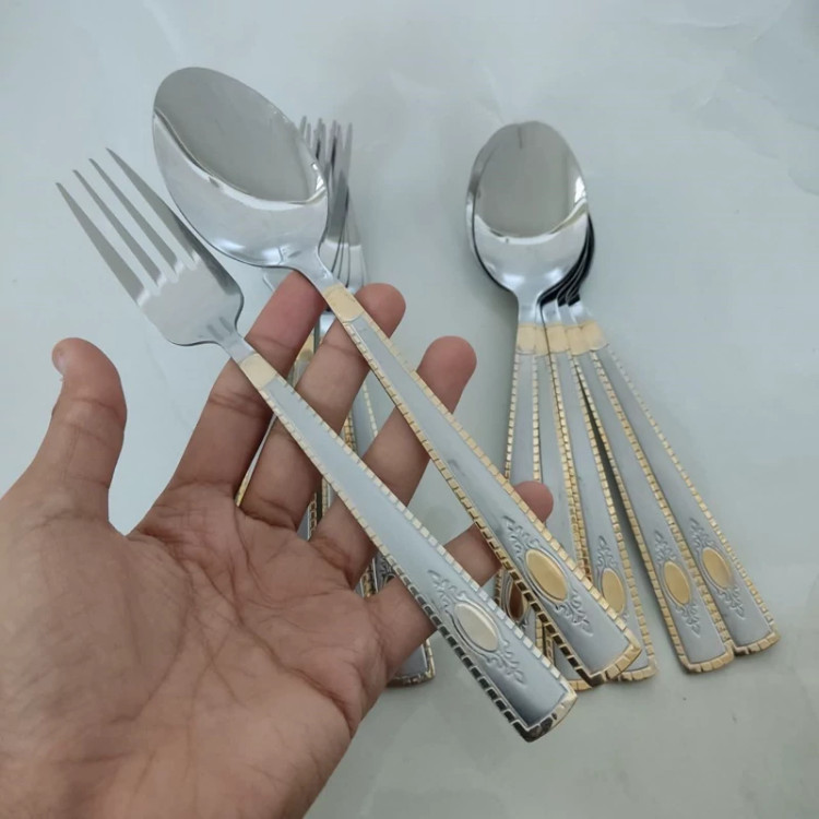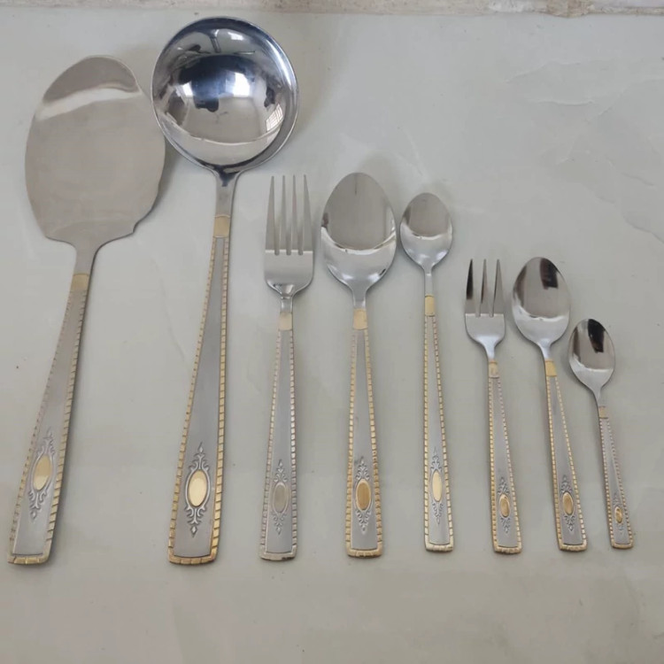 ✅ سرویس قاشق و چنگال استیل طلایی یونیک