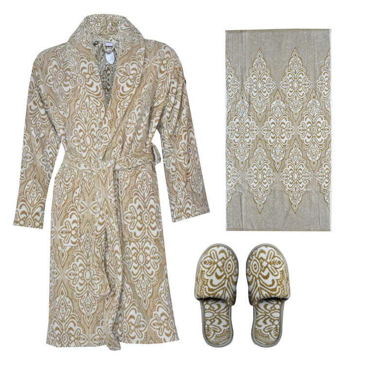 محصول کشور ترکیه - عدم ایجاد حساسیت - عدم پرز دهی - دارای جنسی 100% پنبه - به ابعاد: قد: 100 دور کمر:100 - عرض شانه:40 سانتی متر و ابعاد حوله دست و صورت :50x90 سانتی متر و محصول به همراه دمپایی حمام میباشد