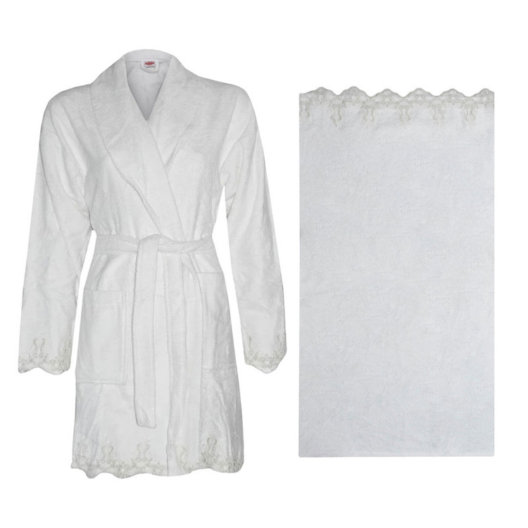 محصول کشور ترکیه - عدم پرز دهی - عدم ایجاد حساسیت - دارای ابعاد: قد: 100 سانتی متر - عرض شانه: 55 سانتی متر - دور کمر: 110 سانتی متر و به همراه حوله دست و صورت به ابعاد: 50x90 سانتی متر - جنس محصول 60% بامبو و 40 % پنبه می باشد