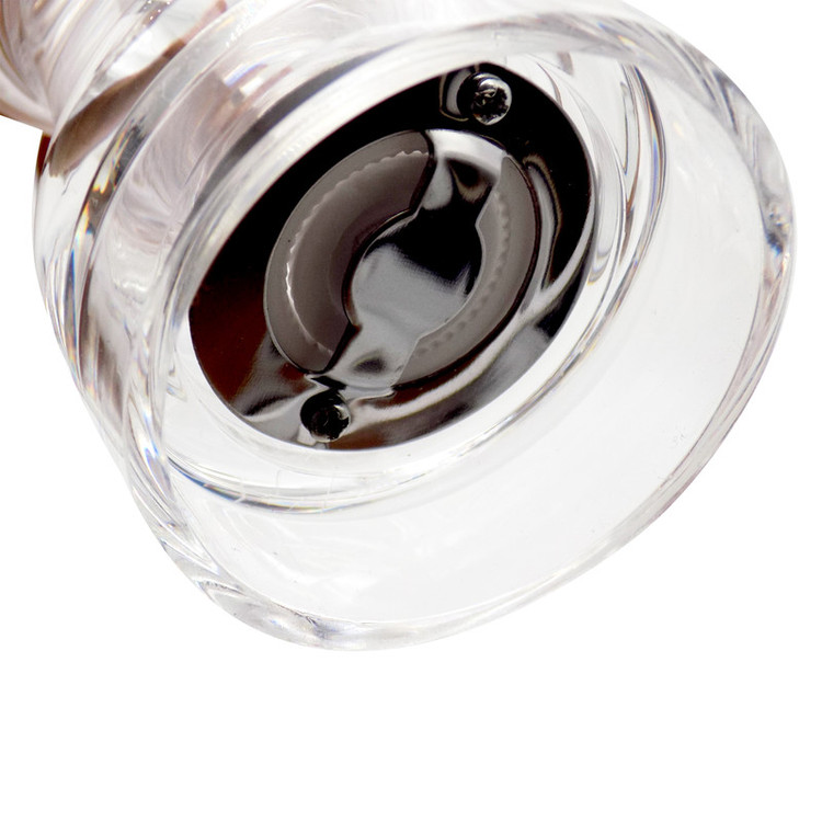 از پیچ بالایی برای باز کردن درب فلفلساب و همچنین برای تنظیم میزان آسیاب شدن فلفلها استفاده کنید. هرچقدر پیچ سفتتر باشد ، دانههای فلفل ریز تر میشوند.
