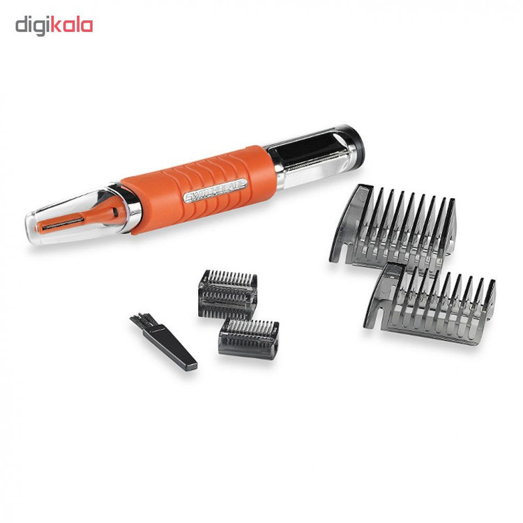 4 عدد شانه جهت کوتاهی مو و ابرو دارای چراغ ال ای دی جهت مشاهده بهتر نقطه اصلاح سوئیچ کردن دستگاه با جابه جایی قطعه وسط دستگاه درپوش محافظ تیغه