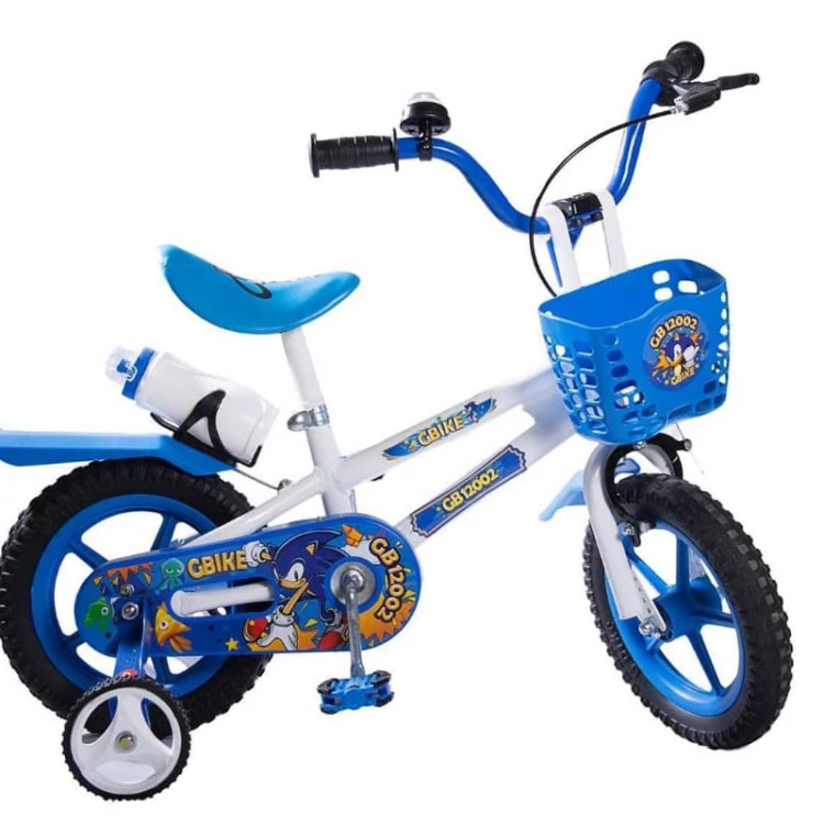 دوچرخه آبی سونیک سایز12 مناسب 2تا7سال دارای کمکی و سبد و قمقمه با قابلیت تنظیم ارتفاع صندلی و فرمان
