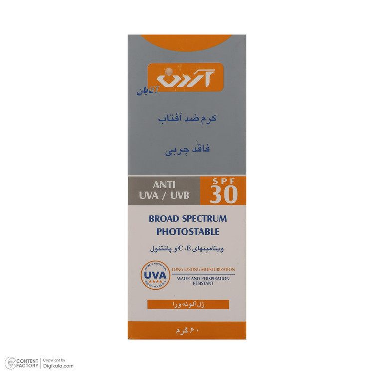 ضد آب , محافظت کننده در برابر اشعه UVA , محافظت کننده در برابر اشعه UVB , مرطوب کننده , غیر کومدون زا