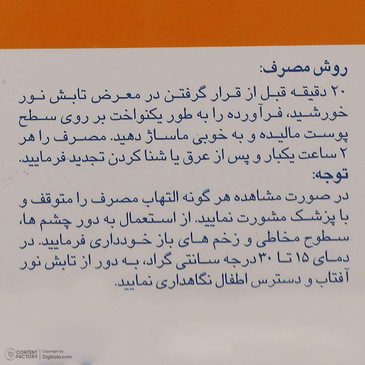 ناحیه استفاده: صورت , گردن , بدن