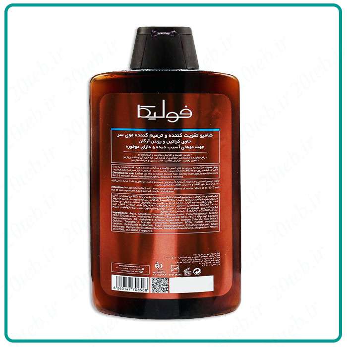 شامپو تقویت کننده مو Keratin E فولیکا حاوی روغن آرگان و کراتینE بوده و مناسب انواع مو از جمله موهای آسیبدیده است. این شامپو به سبب نداشتن سولفات برای موهای رنگ شده، کراتینه و بوتاکس شده نیز بسیار مناسب بوده و از وزشدگی، موخوره و گره خوردن موها جلوگیری میکند.
