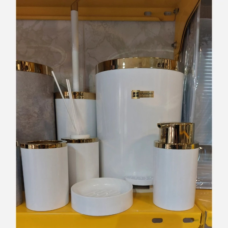 ست بهداشتی 6 پارچه هارمونی مدل روشا سفید طلایی