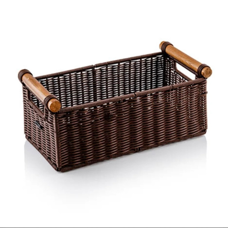 سبد بافت کمند زیباسازان انتخاب خانم های خوش سلیقه است .مناسب ترین انتخاب برای نظم دادن به میز آرایش ، سرویس بهداشتی ، کابینت ،مناسب برای سرو میوه و نان روی میز پذیرایی و… است . این محصول دارای سه سایز مختلف میباشد که بسیار کاربردی است . جنس این محصول از پلاستیک به همراه دسته های چوبی میباشد . از مزایای این محصول میتوان به استقامت ،ضد آب بودن ،پوسته پوسته نشدن طی استفاده مداوم و زیبایی آن اشاره کرد .در رنگبندی خردلی.نسکافه.قهوه ای