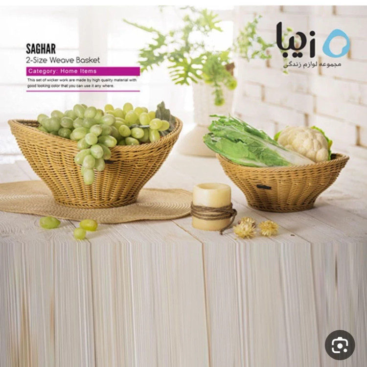 اگر براتون خیلی مهمه که میوه رو تو چه ظرفی سر میز قرار می دهید.سبد بافت ساغر زیباسازان رو به شما معرفی میکنم که در دو سایز مختلف می باشد که مناسب میوه های ریزو درشت است . جنس این محصول از پلاستیک میباشد . از مزایای این محصول میتوان به استقامت ،ضد آب بودن ،پوسته پوسته نشدن طی استفاده مداوم و زیبایی آن اشاره کرد .در رنگبندی خردلی.نسکافه ای.قهوه ای
