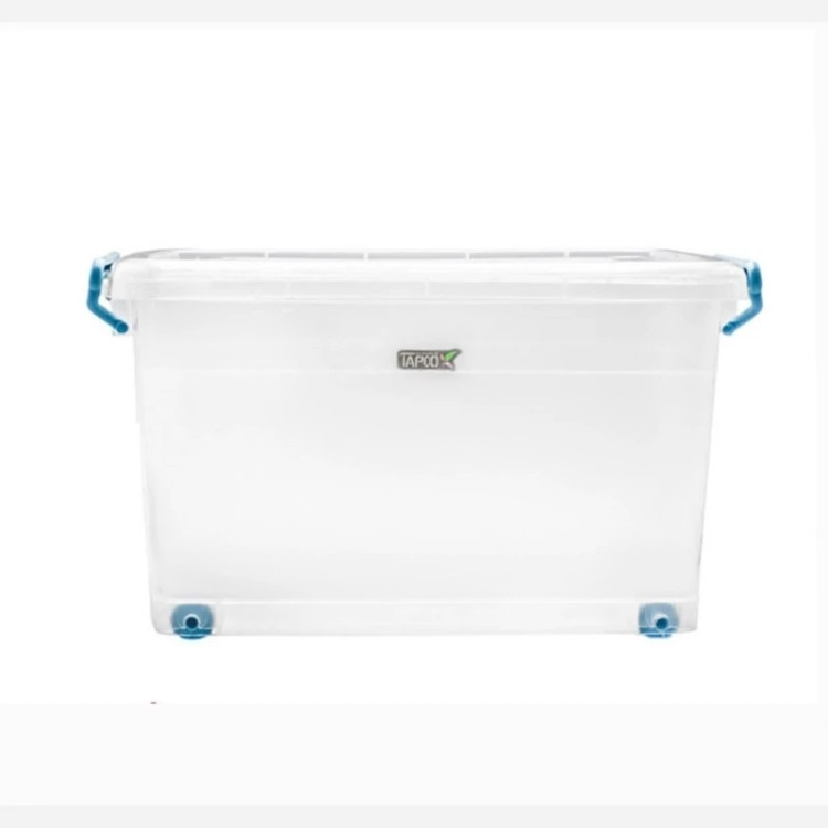 صندوق چرخدار 208 شفاف تاپکو، جنس محصول از پلاستیک است. درب این صندوق بدلیل وجود گیره در دو طرف آن به خوبی کیپ می شود. در چهار طرف صندوق چهار چرخ برای سهولت در جابه جایی و حمل راحت تعبیه شده است.