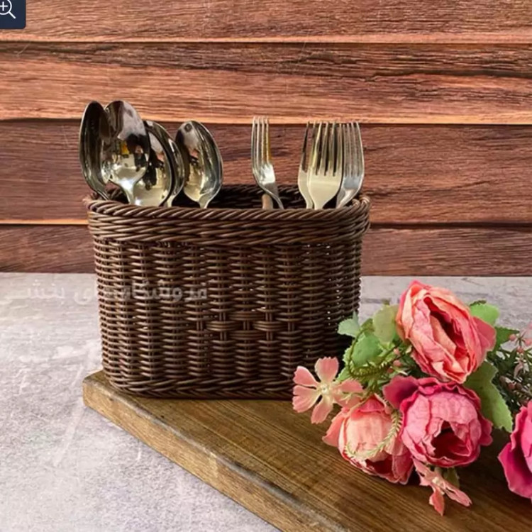 سبد بافت جا قاشقی پرینا زیباسازان بهترین انتخاب برای کارد و چنگال ، جای قاشق برای روی میز پذیرایی ، جا مدادی برای روی میز بچه ها و حتی جای لوازم آرایشی برای روی میز شماست .جنس این محصول از پلاستیک میباشد . از مزایای این محصول میتوان به استقامت ،ضد آب بودن ،پوسته پوسته نشدن طی استفاده مداوم و زیبایی آن اشاره کرد .در رنگبندی خردلی.نسکافه ای .قهوه ای