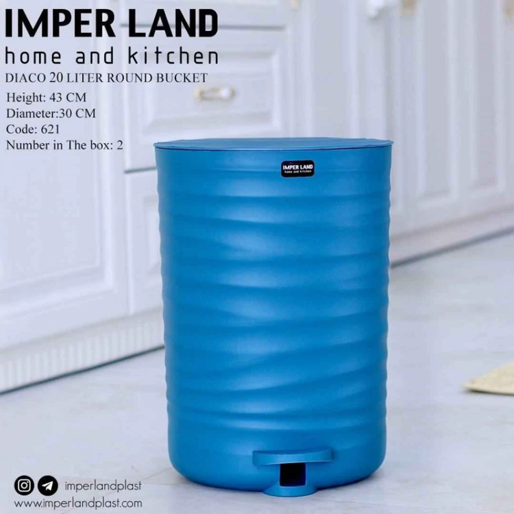 سطل زباله خانگی 20 لیتری امپرلند مدل گرد دیاکو کد 43604 دارای یک اهرم پدالی و آرام بند میباشد
