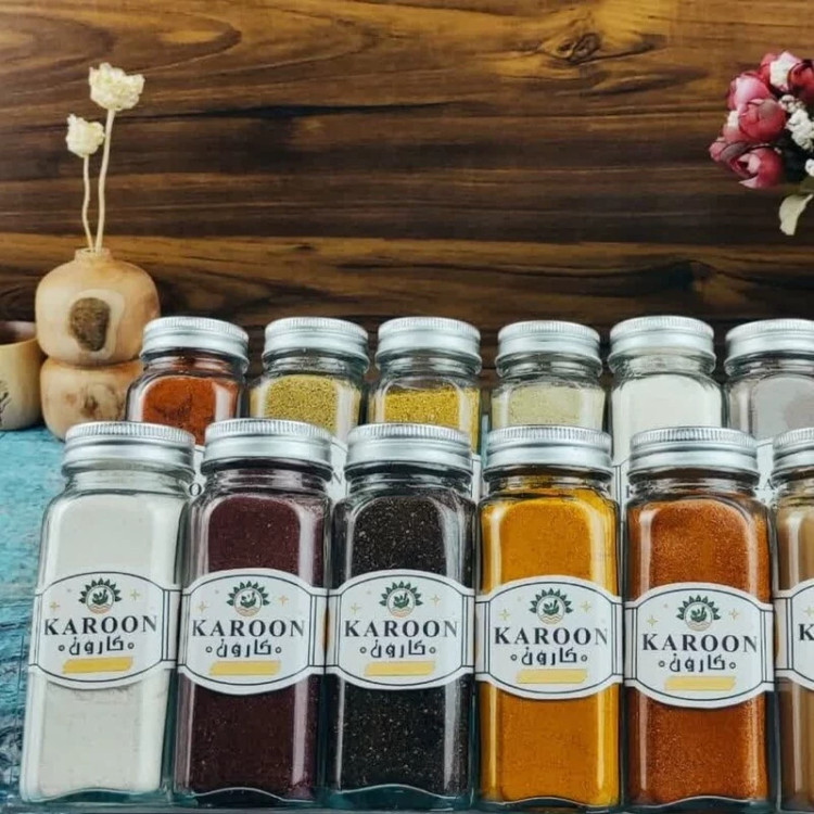 پک 24قلم ادویه همراه با نظم دهنده و شیشه مکارتی با در نمک پاشی کارون