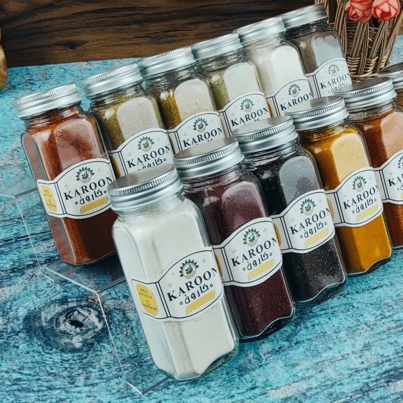 پک 24قلم ادویه همراه با نظم دهنده و شیشه مکارتی با در نمک پاشی کارون