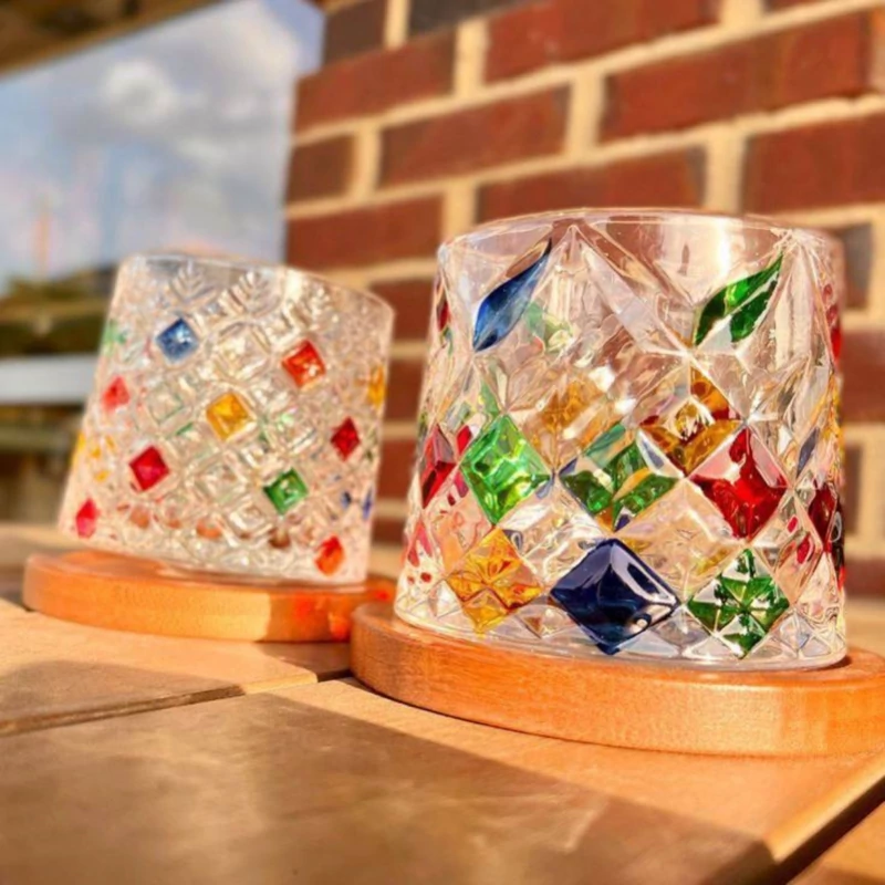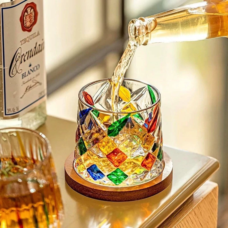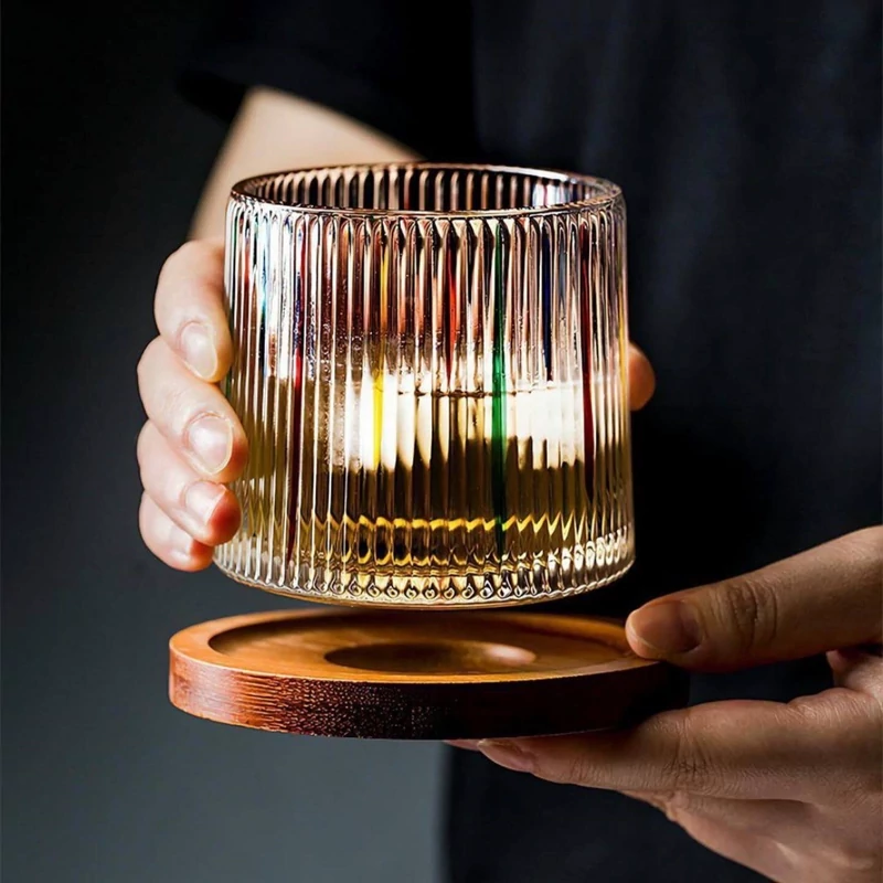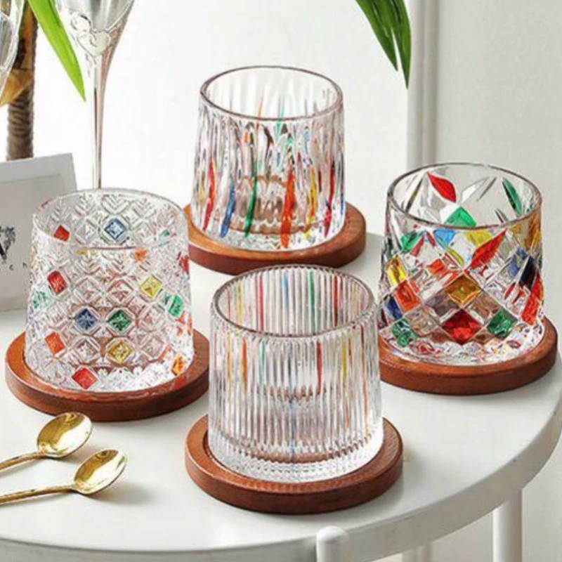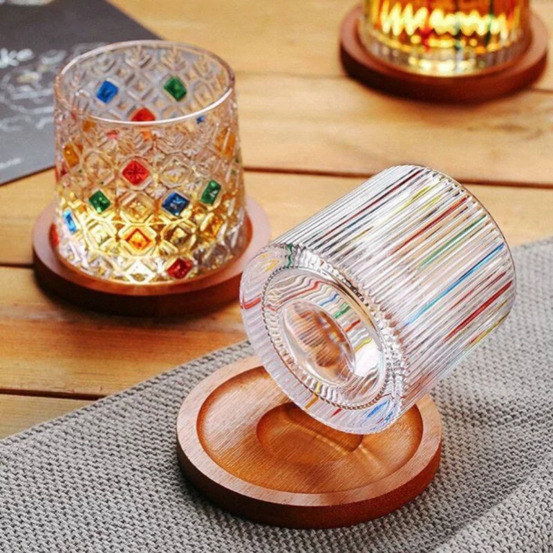 لیوان چرخشی رنگی بازیره چوبی در چهارطرح وارداتی