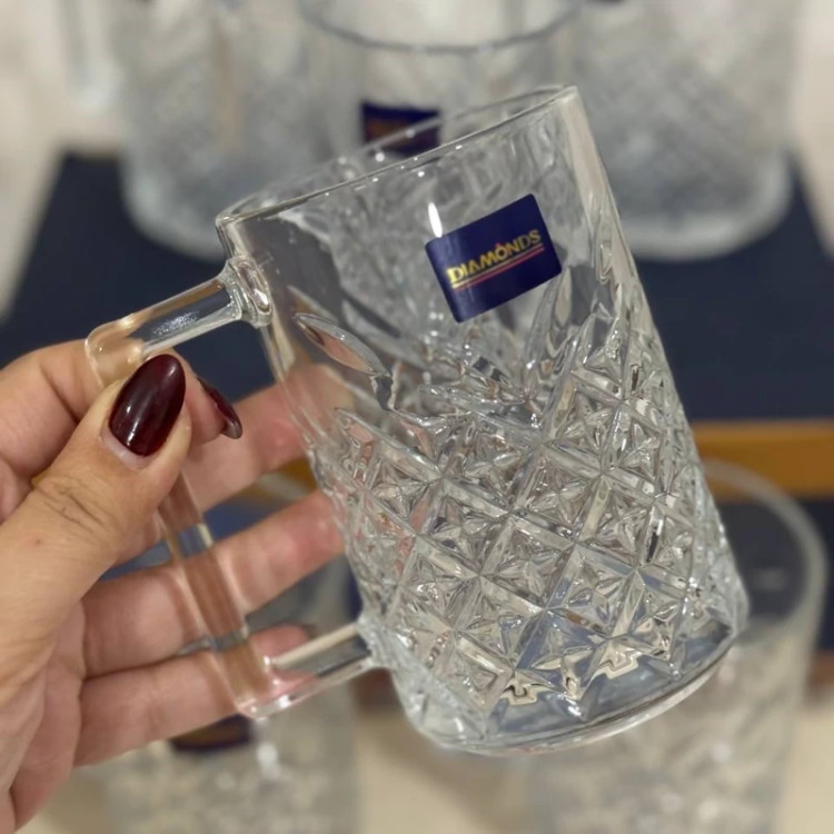 لیوان دسته دار تراشدار برند diamonds شش تایی