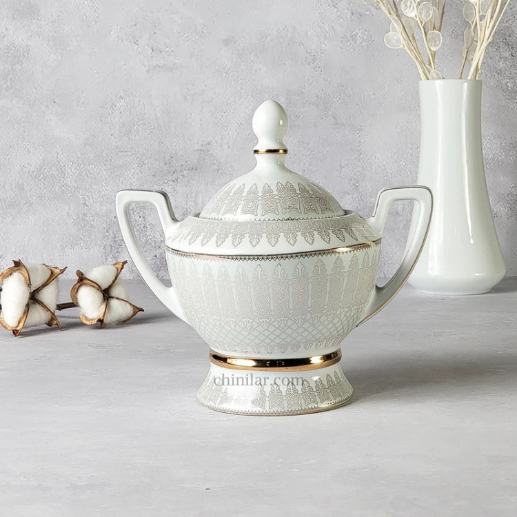 قندان طرح غزل چینی لورین با طراحی هنرمندانه و جذاب، گزینهای ایدهآل برای سرو شکر و قند در مهمانیها و دورهمیهاست. این قندان از چینی با کیفیت بالا ساخته شده و به دلیل زیبایی و ظرافت طرحها و ترکیب رنگ فیروزه ای جلوهای خاص به سفره شما میبخشد. علاوه بر کارایی، این محصول میتواند به عنوان یک هدیه زیبا در مناسبتهای مختلف نیز مورد استفاده قرار گیرد. با قندان لورین، هر لحظه را خاصتر کنید!