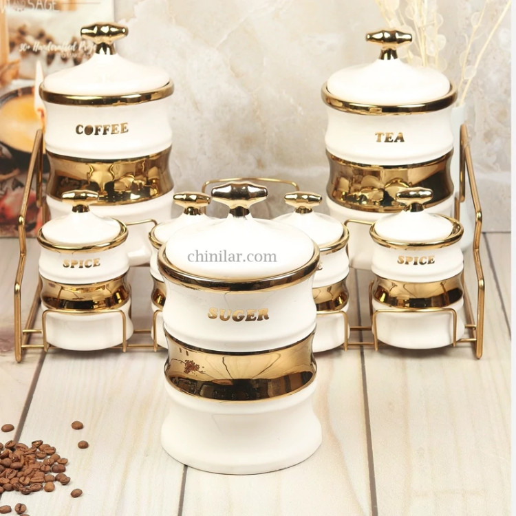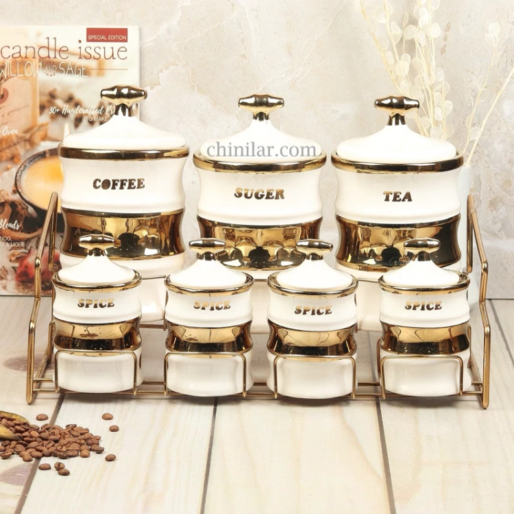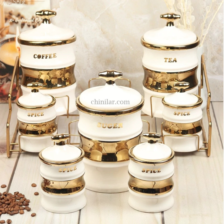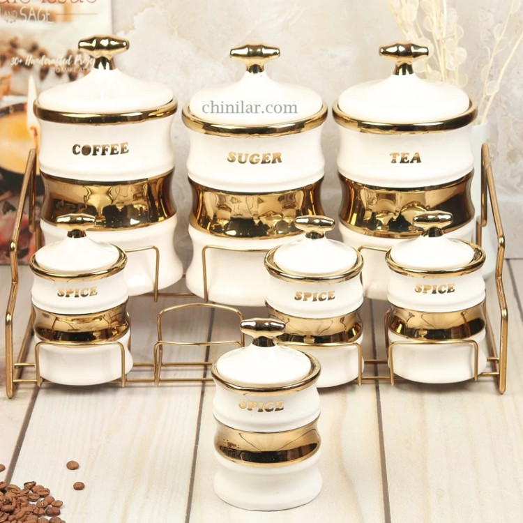 شکوه و درخشش آشپزخانه با ست بانکه سرامیکی سفید طلایی