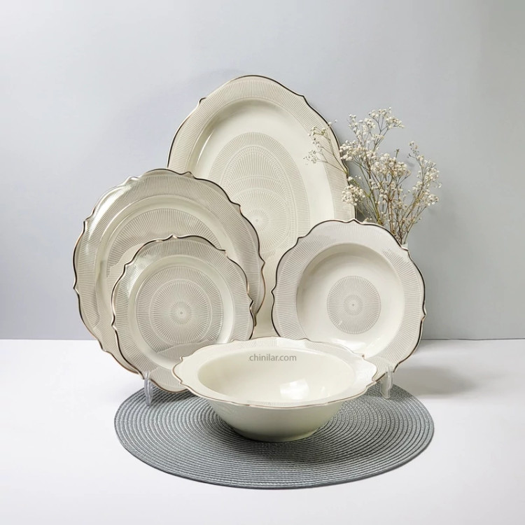 سرویس چینی 6 نفره طرح دلارام کد 3007 از برند معتبر دارسی (Darcy) با قالب محبوب آنجلکا (Angelica) و نقوش کلاسیک نقرهای همراه با خطوط ظریف لبطلایی، جلوهای خاص و چشمنواز به میز غذاخوری شما میبخشد. این ظروف از جنس چینی نیوبن (New Bone China) تولید شدهاند که علاوه بر زیبایی، دوام بالا و مقاومت مناسب در برابر حرارت و شستوشو دارند و قابل استفاده در ماشین ظرفشویی هستند.
