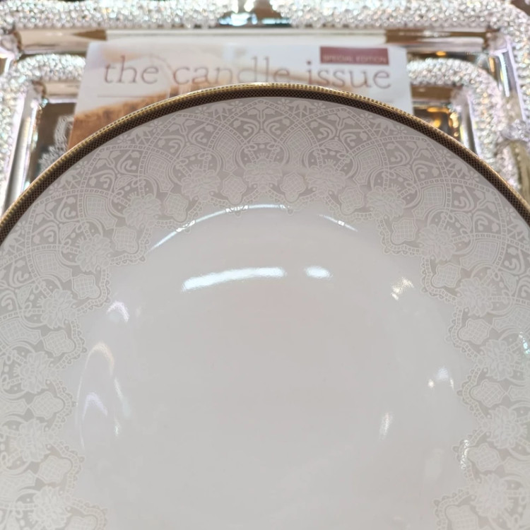 پیش دستی سایز 21 گل نازنین چینی لورین، یک ظرف زیبا و باکیفیت از جنس چینی است که با طراحی جذاب گل نازنین تزئین شده است. این پیش دستی با ابعاد 21 سانتیمتر، مناسب برای سرو انواع غذاها، دسرها و سالادها میباشد. لعاب براق و صاف آن باعث سهولت در تمیز کردن و نگهداری میشود. همچنین، این ظرف به عنوان یک عنصر دکوری نیز میتواند به زیبایی سفره و فضای آشپزخانه شما افزوده شود. با طراحی شیک و کاربری آسان، این پیش دستی گزینهای عالی برای مهمانیها و استفاده روزمره است.
