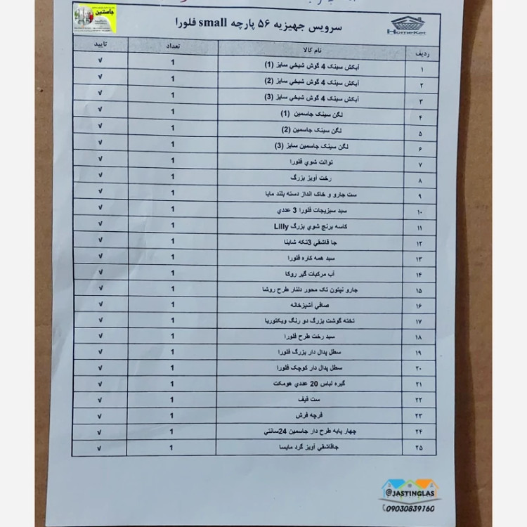 سرویس جهیزیه عروس ( هومکت 56 پارچه )