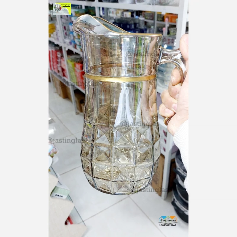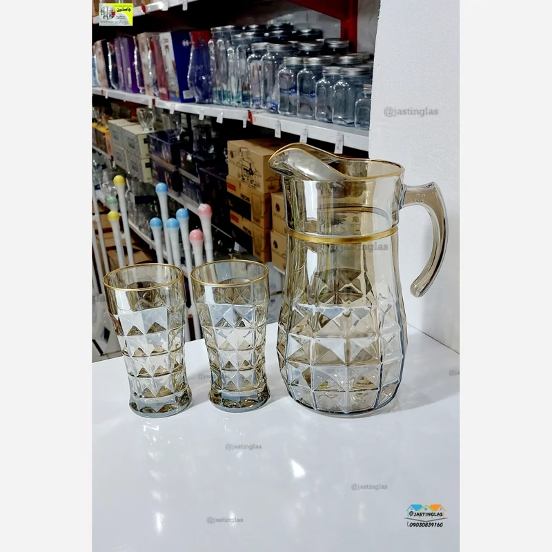پارچ و لیوان آکوامارین شامپاین لب طلایی ( مارک نوری تازه ) کیفیت صد درصد عالی و مقاوم شیک زیبا 😍😍