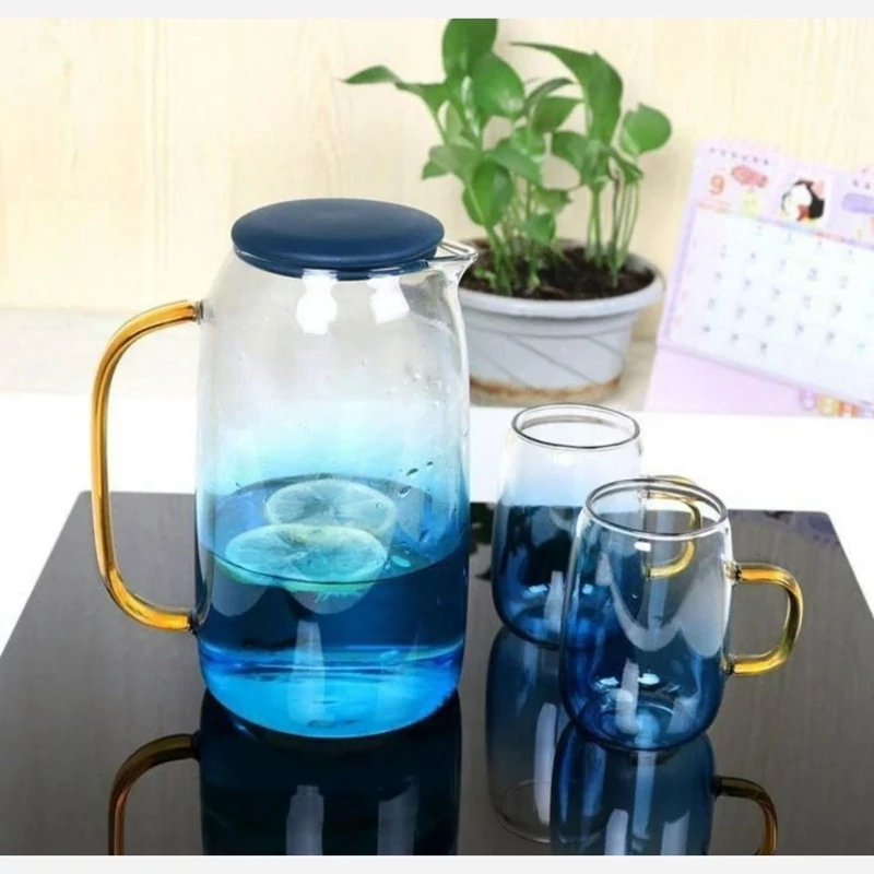 پارچ پیرکس رنگی چهار عدد لیوان پیرکس