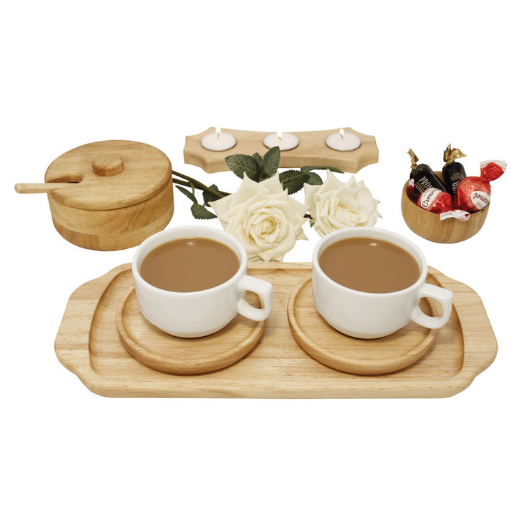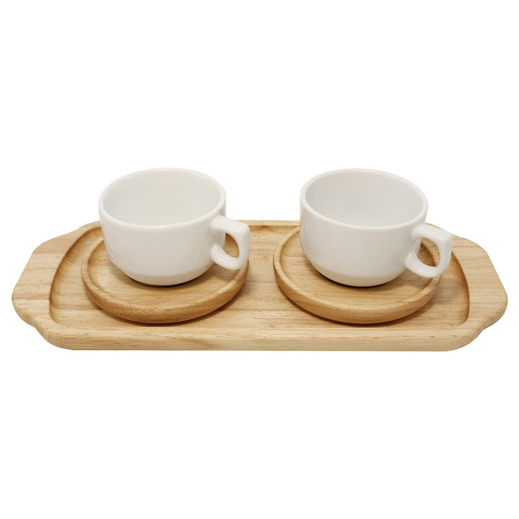این محصول دارای جعبه میباشد دارای 1 عدد سینی از جنس چوب به ابعاد 1.8 × 14 × 33 سانتیمتر دارای 2 عدد فنجان از جنس چینی به ابعاد 8 × 8 × 5.5 سانتیمتر دارای 2 عدد نعلبکی از جنس چوب به ابعاد 1.8 × 11 × 11 سانتیمتر جنس چوب رابروود