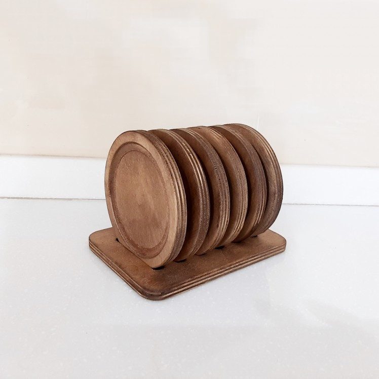 این محصول زیبا از چوب بادوام، باکیفیت و ضد آب پلایوود روس تهیه شده و شامل یک پایه و 6 عدد زیرلیوانی میباشد.