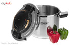 زودپز «Dessini» (دسینی) مدل «153935B» دارای سیستم قفل ایمنی است تا هنگام تشکیل بخار داخل زودپز، مانع بازشدن درپوش آن شود. سوپاپی روی درپوش تعبیه شده است تا فشار اضافهی داخل زودپز را تخلیه کند. این محصول پخت سبزیجات، سوپ، موادغذایی کنسروشده و غذاهای گوشتی را در زمان کوتاهی برای شما امکانپذیر میکند. بدنهی این زودپز تماماستیل ضدزنگ است که آشپزی با آن را لذتبخش میکند و علاوهبر مقاومت بالا، موجب تمیزشدن آسان آن نیز میشود. این مدل زودپز دسینی دارای طراحی آسانبازشوست که بهراحتی با یک دست و بدون صرف ذرهای انرژی و بدون نیاز به کمک و تنها با بالابردن دسته میتوان آن را باز و بسته کرد. زودپز دسینی با گنجایش 6.5 لیتر برای پخت سریع غذاها مناسب است. این محصول را میتوانید با خیال راحت بدون درپوش، داخل ماشین ظرفشویی بشویید. دسینی یکی از تولیدکنندههای موفق در زمینهی محصولات پختوپز است که استفاده از مواد اولیهی مرغوب و باکیفیت باعث شده به یکی از بهترینها در این صنف تبدیل شود.