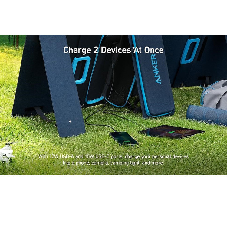 ویژگیها: حداکثر توان: ۱۰۰ وات ولتاژ برق: ۱۸ ولت خروجی USB-A: ۵ ولت ⎓ ۲.۴ آمپر خروجی USB-C: ۵ ولت ⎓ ۳ آمپر ابعاد (تاشده): ۲۰.۷ x ۱۸.۵ x ۳.۳ اینچ / ۵۲۵ x ۴۷۰ x ۸۵ میلیمتر ابعاد (باز شده): ۱۴۴۶ x ۵۲۵ x ۴۵ میلیمتر وزن: ۵ کیلوگرم / ۳۵.۲۷ اونس