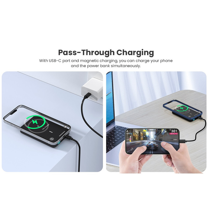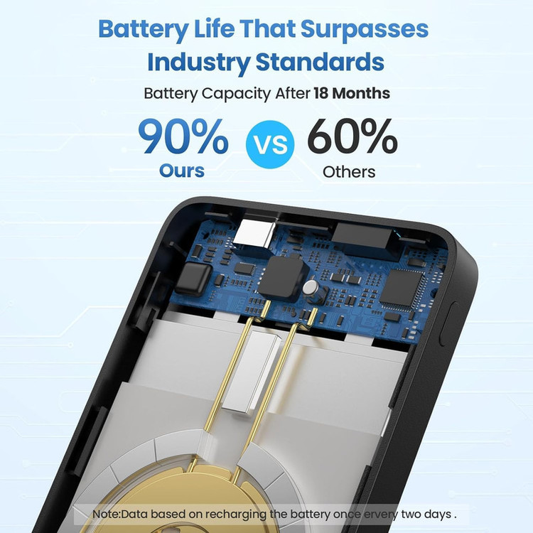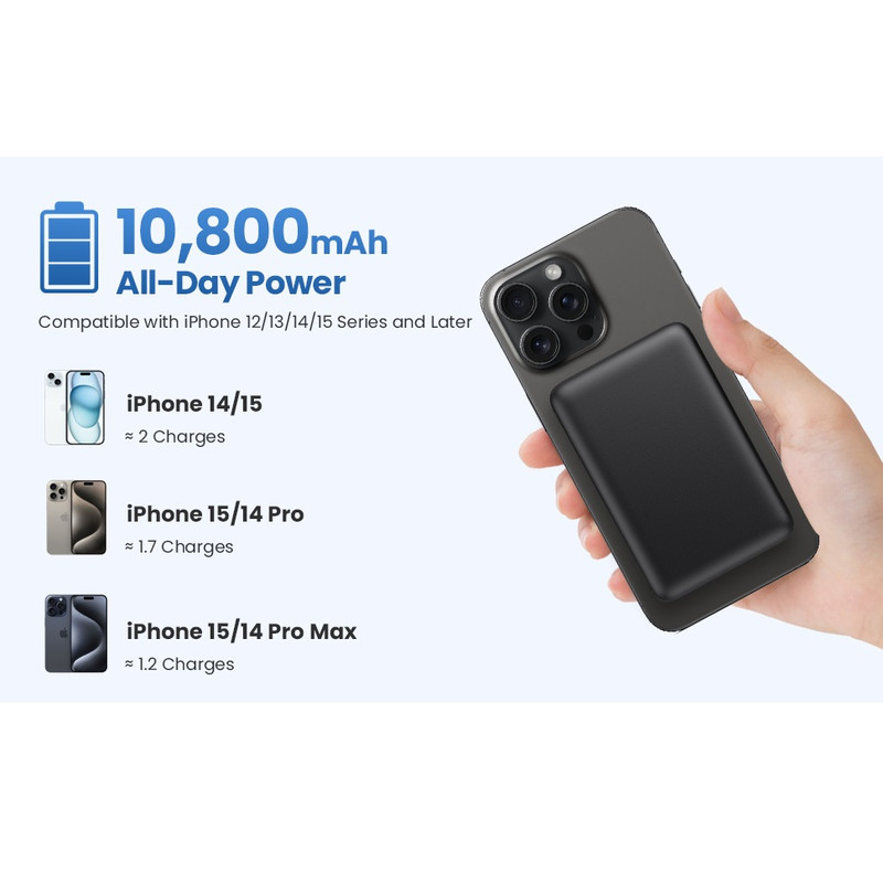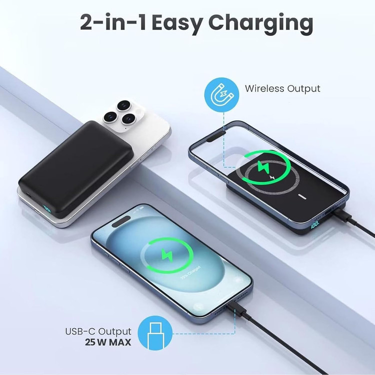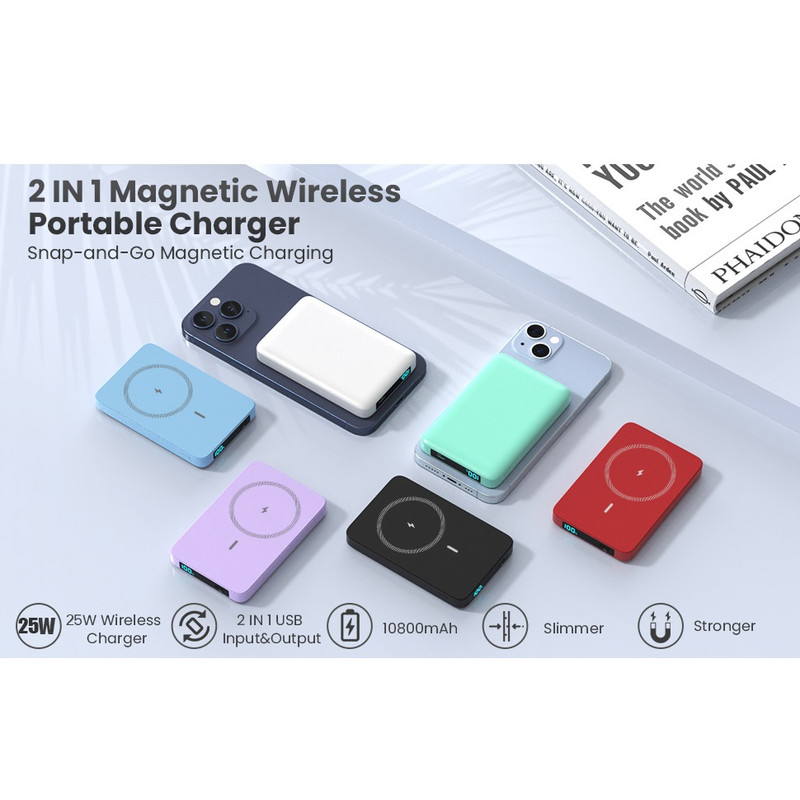 پاوربانک مغناطیسی قابل حمل، پاوربانک بیسیم جمع و جور با نمایشگر LCD و ظرفیت 10800 میلیآمپر ساعت، باتری خارجی 25 واتی با ورودی و خروجی USB-C سازگار با Magsafe، سری آیفون 16/16 پلاس/16 پرو مکس/15/14/13/12