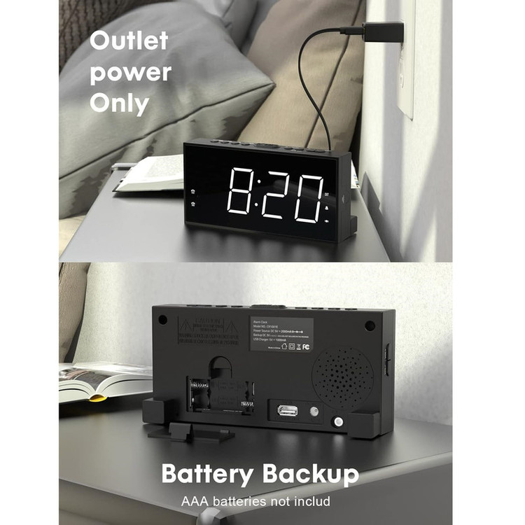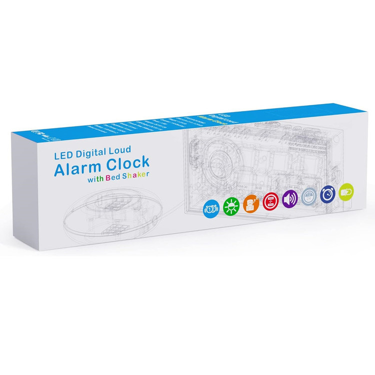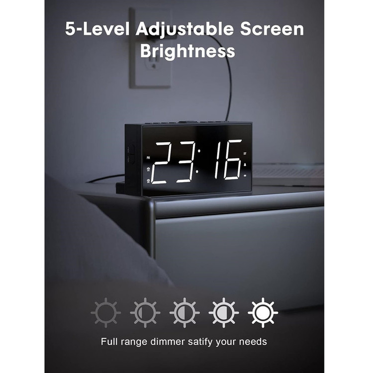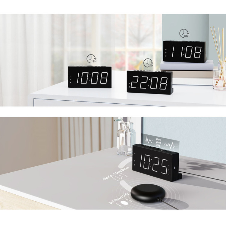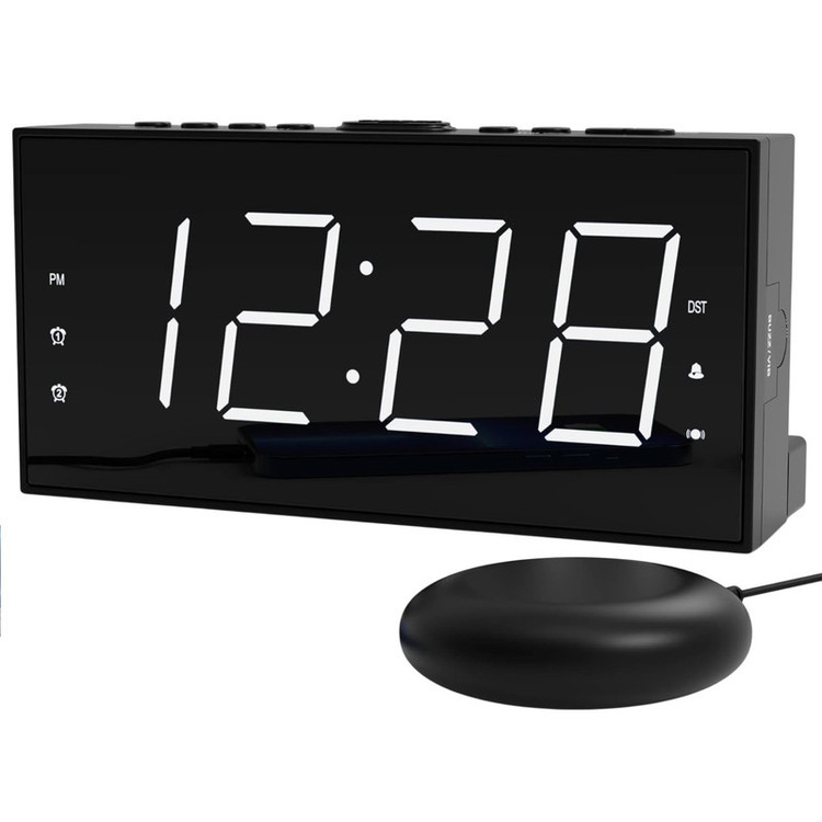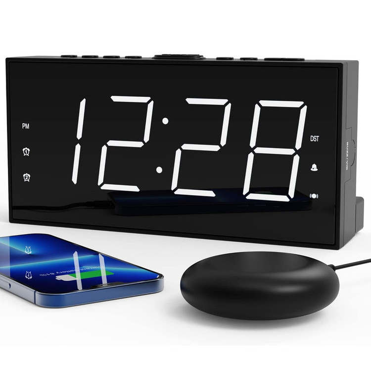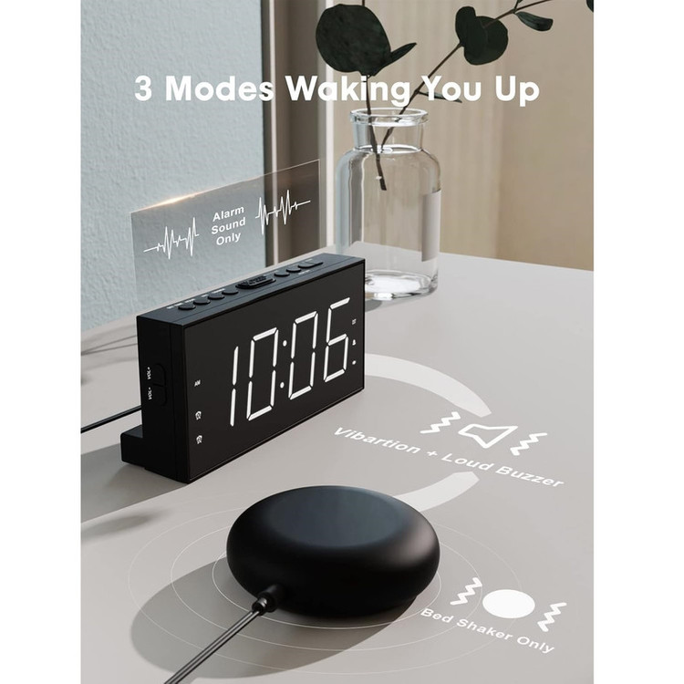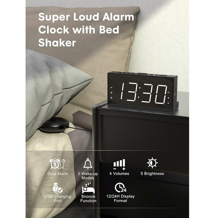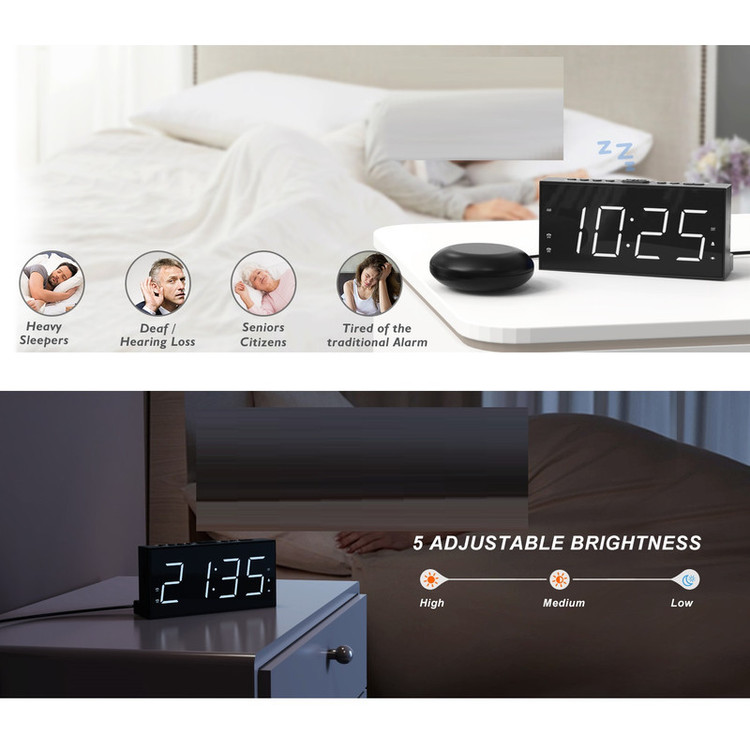 ساعت زنگ دار ROCAM برای اتاق خواب برای افراد سنگین خواب، کم شنوا، ناشنوا، ساعت زنگ دار دوگانه با لرزاننده تخت، ساعت لرزشی بسیار بلند 7.5 صفحه نمایش LED بزرگ با 5 دیمر، شارژر USB (سفید).