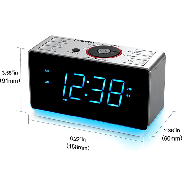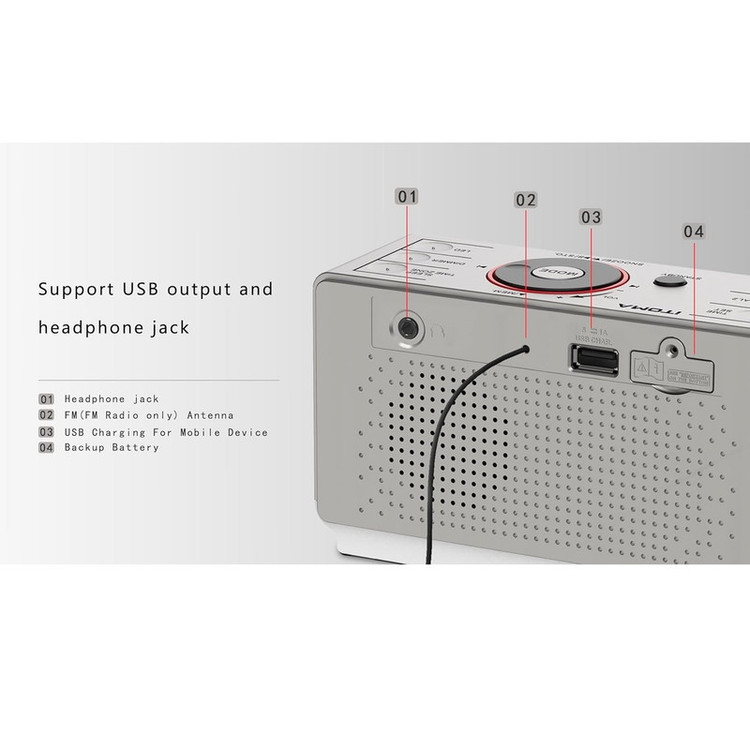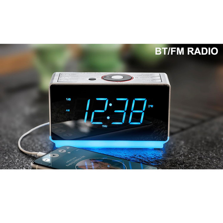 رادیو FM، بلندگوی بلوتوث، روشنایی و صدا قابل تنظیم، پورت شارژ USB (نوع A)، حافظه پشتیبان باتری، نمایشگر LED، ساعت زنگ دار دوگانه با تعویق، نور شب آبی یخی، صفحه نمایش LED 1.4 اینچی،