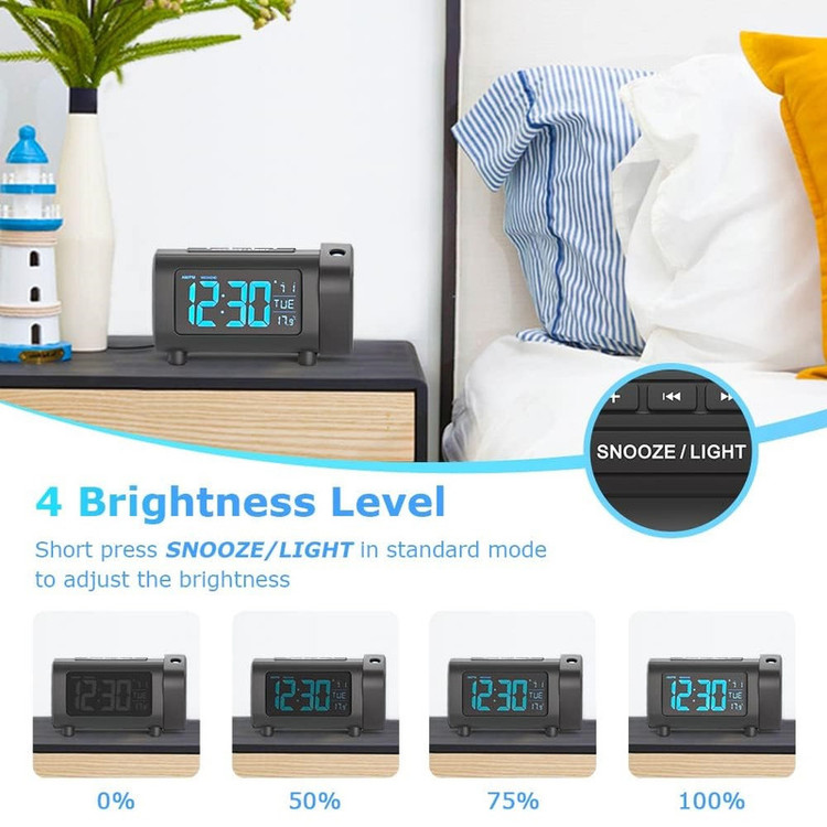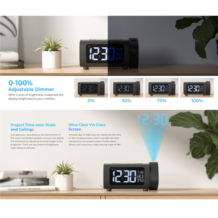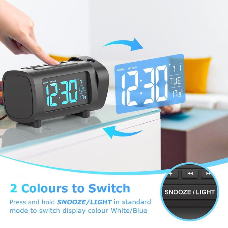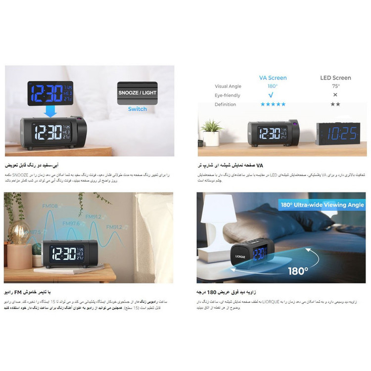 نمایشگر دما، رادیو ، ساعت پروجکشن، پورت شارژ ، تعویق، روشنایی قابل تنظیم،