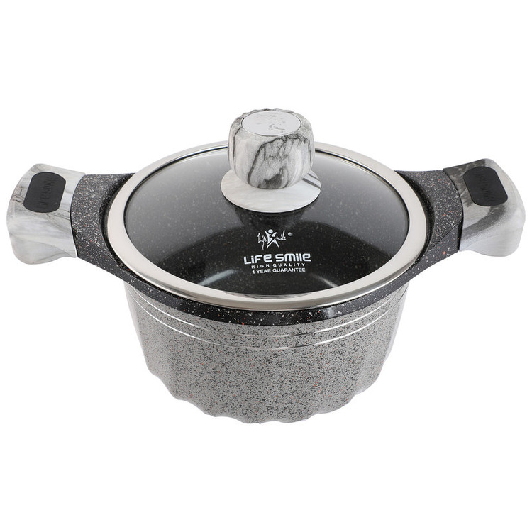 سرویس قابلمه چدنی لایف اسمایل مدل LIFEP2-6-3 دارای سه عدد قابلمه چدنی در اندازه های 32 - 28 - 24 با درب شیشه ای بسیار بادوام و دسته های نسوز (دسته های قابلمه های از جنس باکالیت ) می باشند این سرویس قابلمه کیفیت ساخت بسیار بسیار بالایی دارد . کفه بیرونی قابلمه طوری طراحی شده است که گرما را بسیار سریع جذب خود کرده و در نتیجه قابلمه سریعتر از سایر قابلمه ها داغ خواهد شد و مزیت دیگر آن این است که طراحی فوق العاده کف بیرونی آن باعث می شود قابلمه مدتی تمام داغ بماند و در نتیجه غذای شما بعد از خاموش کردن شعله گاز مدتی داغ بماند . درب شیشه ای شفاف از جنس پیرکس باعث می شود در هنگام پخت غذا براحتی محتویات قابلمه را مشاهده و مراحل پخت غذا را مشاهده کرد. پیرکس در مقابل حرارت بسیار مقاوم است . شستشوی بسیار راحت و تنها با یک ابر از مزایای ظروف سرامیکی است که استفاده از آن را بیش از پیش راحت کرده است.