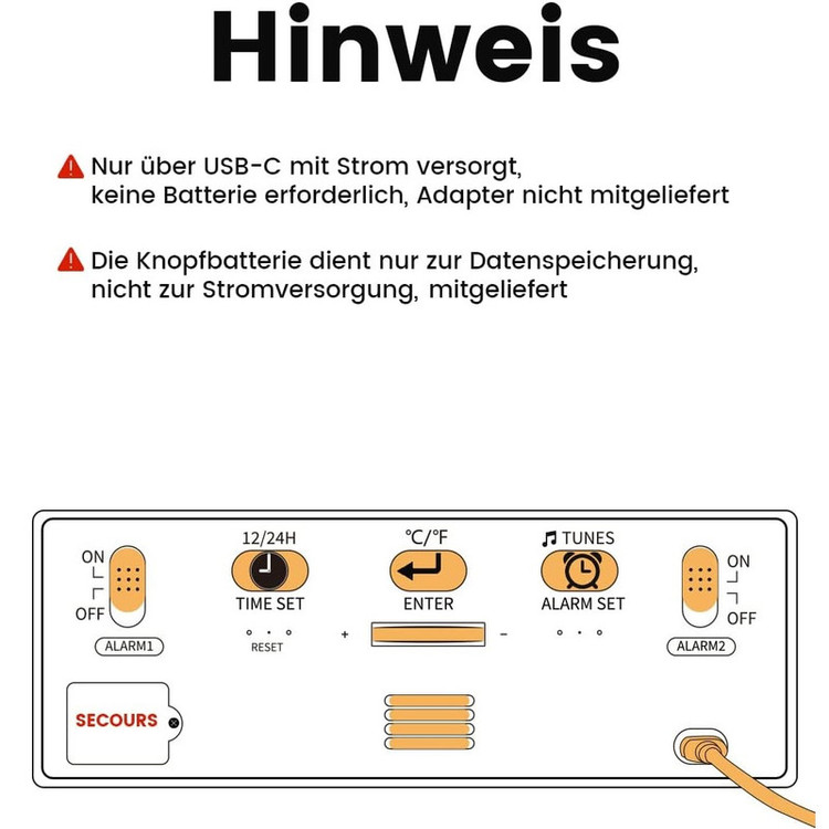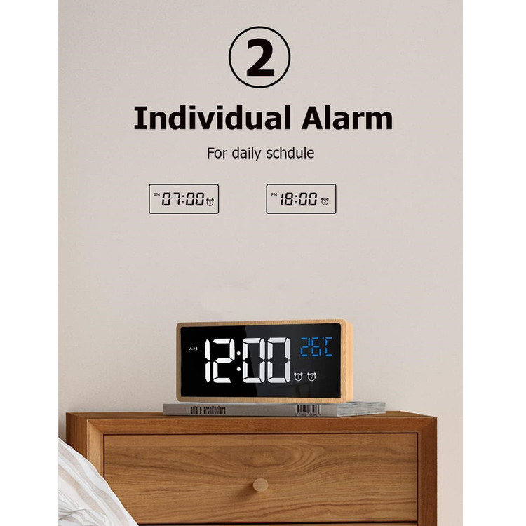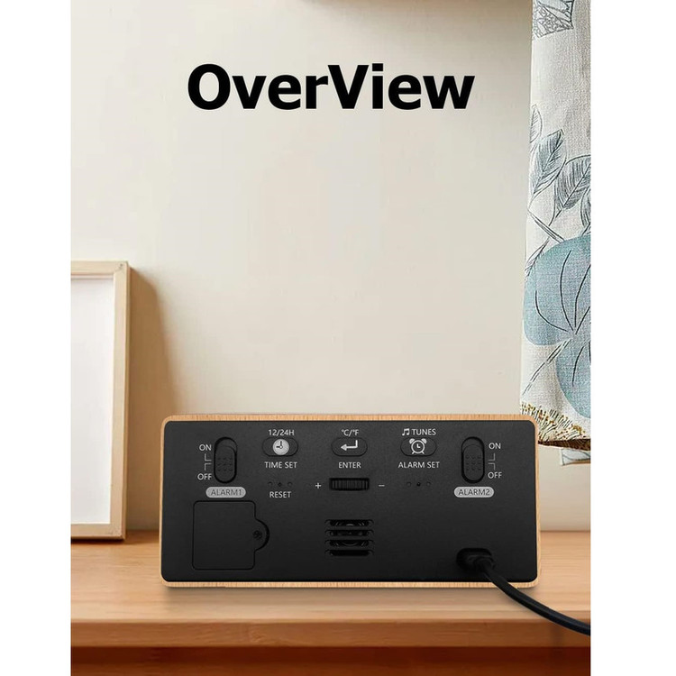 سایر ویژگیها: ساعت زنگ دار چوبی، نمایشگر LED، 2 زنگ هشدار، منبع تغذیه USB-C، باتری پشتیبان داخلی، زمان تعویق 5 دقیقه، ساعت زنگ دار دیجیتال