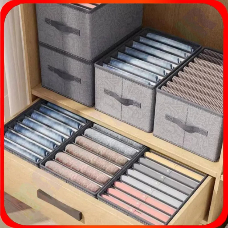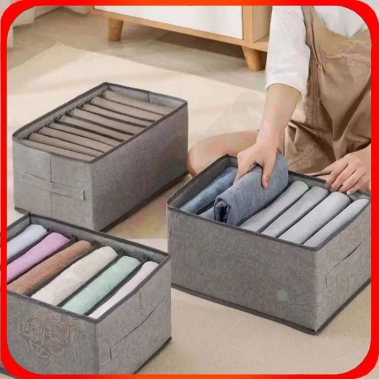 باکس لباس ۶ خانه پارچهای با اسکلت داخلی، انتخابی عالی برای نظمدهی به لباسها و لوازم شخصی 🧦