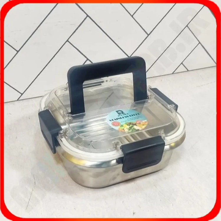 ظرف ناهارخوری استیل ضدزنگ دسته دار زومبا B1186 با حجم 1.1 لیتر، مناسب برای کودکان و نوجوانان، مقاوم، بهداشتی و با طراحی کاربردی برای مدرسه و سفر.