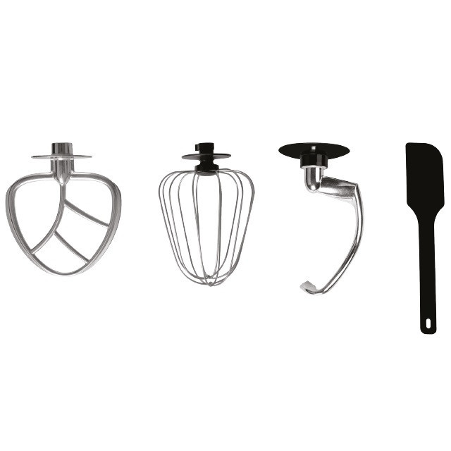 دارای سه سری بالونی خامه زن و پدالی مخلوط کن و خمیرزن قلابی شکل ، درب پوشش کاسه همزن ، دفترچه راهنما