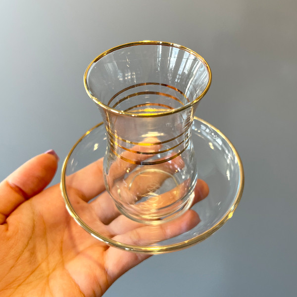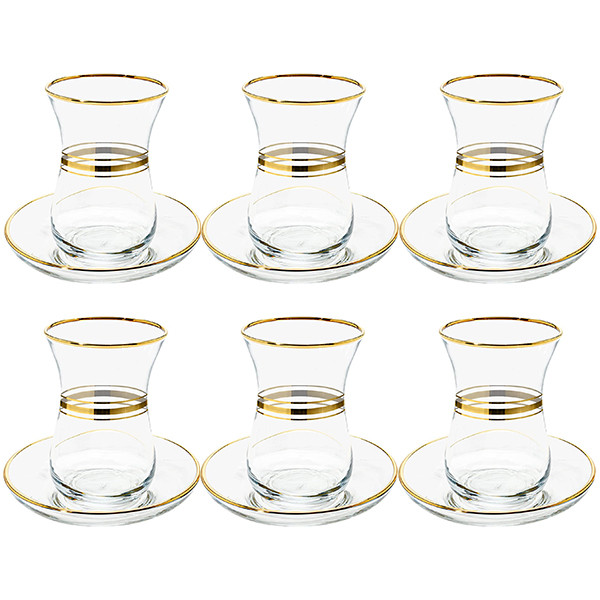 شامل 6 عدد استکان لب طلا و 6 عدد نعلبکی لب طلا برند پاشاباغچه ترکیه