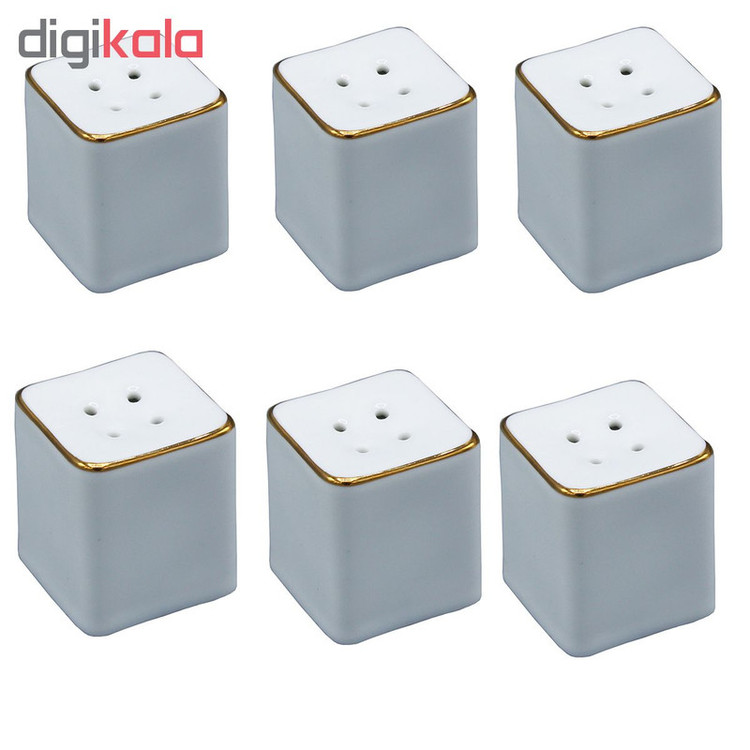 مشتمل بر 6 عدد نمکدان هرکدام به ابعاد 4×3.5×3.5 سانتی متر و وزن 50 گرم