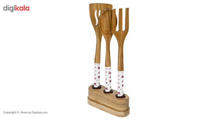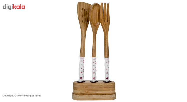 - سرویس چهار پارچه شامل: - یک عدد کفگیر آشپزی به طول 24.5 سانتیمتر - یک عدد قاشق آشپزی به طول 24.5 سانتیمتر - یک عدد چنگال آشپزی به طول 24.5 سانتیمتر - یک عدد پایه به طول 12.5 سانتی متر - ساخته شده از چوب بامبوم