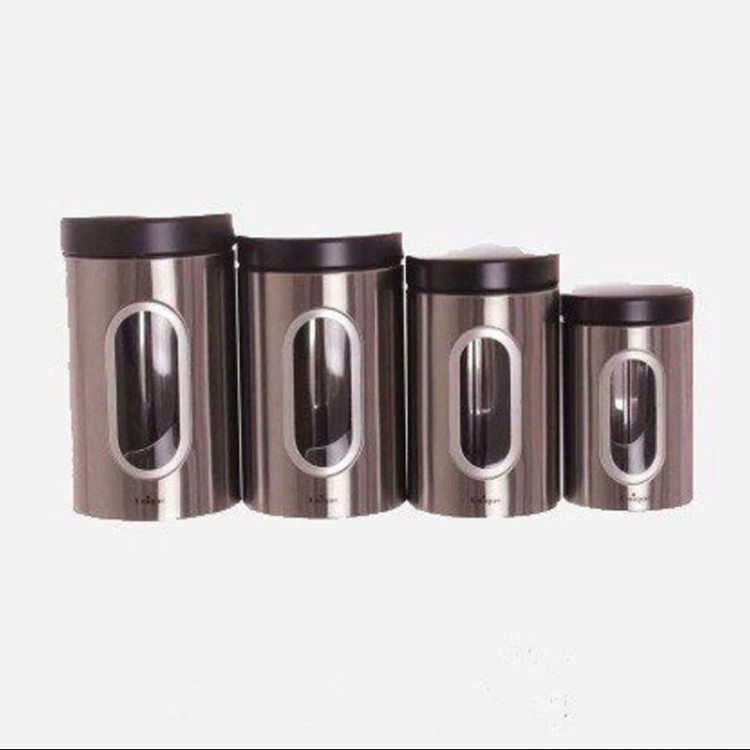 سرویس 4 پارچه بانکه پنجره دار استیل یونیک کد 5990 ” ظروفی هستند مناسب برای نگهداری انواع مواد غذایی از جمله حبوبات، ماکارونی و پاستا، مربا و مارمالاد، برنج و … . جنس بدنه این بانکه ها ازاستیل ضد زنگ است. همه این ظروف دارای درب های فشاری هستند تا بعد از بسته شدن از بیرون نریختن مواد داخل آن اطمینان پیدا کنید. طراحی این سرویس بسیار ساده و شیک بوده و با هر آشپزخانه ای ست میشود.