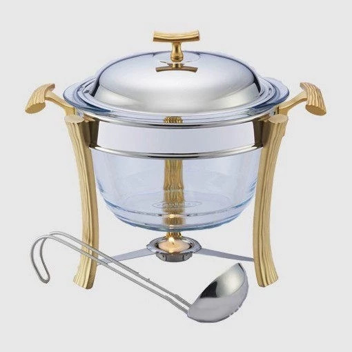 “سوفله خوری سوپ طلایی یونیک کد 3853” ساخته شده از دو قسمت مجزا است. ظرف پیرکس فرانسه داخلی برای قرار دادن غذا و بدنه و درب از جنس استیل ضد زنگ 10-80 درجه یک. مناسب برای سرو انواع غذا به صورت سرد و گرم. زیر این ظرف یک جا شمعی تعبیه شده و گرمای کافی برای گرم نگه داشتن انواع غذا ها را تامین میکند. همراه با این سوپ خوری یک ملاقه استیل نیز عرضه میشود. بدنه براق و دسته های زیبای این محصول ظاهری بسیار لوکس و مناسب جشن ها و تشریفات خاص شما دارد.