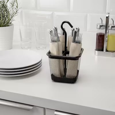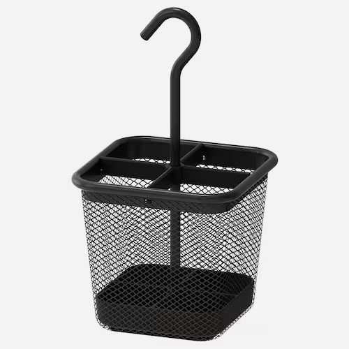 از سبد آویزی قاشق چنگال ایکیا IKEA-UPPDATERA برای برقراری نظم در کشو ها و کمد ها استفاده کنید. در اینصورت لازم نیست زمان زیادی برای جستجوی وسیله مورد نظر صرف کنید. این جاقاشقی دارای 4 قسمت برای قرار دادن کارد، چنگال و قاشق های مختلف است. برای آویزان کردن نیز مناسب است.این محصول دارای رنگ مشکی بوده و دور تا دور آن را توری در بر گرفته است.برای شستن آن میتوان آن را با دست و یا آن را در ماشین ظرف شویی قرار داد.