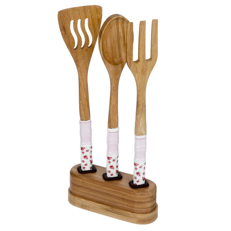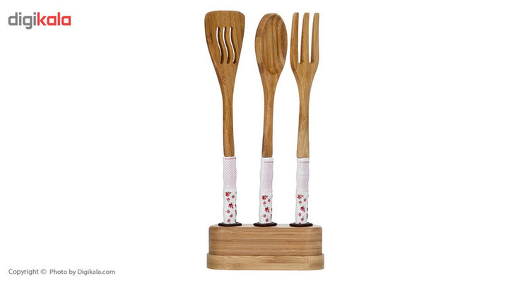 - سرویس چهار پارچه شامل: - یک عدد کفگیر آشپزی به طول 24.5 سانتیمتر - یک عدد قاشق آشپزی به طول 24.5 سانتیمتر - یک عدد چنگال آشپزی به طول 24.5 سانتیمتر - یک عدد پایه به طول 12.5 سانتی متر - ساخته شده از چوب بامبوم