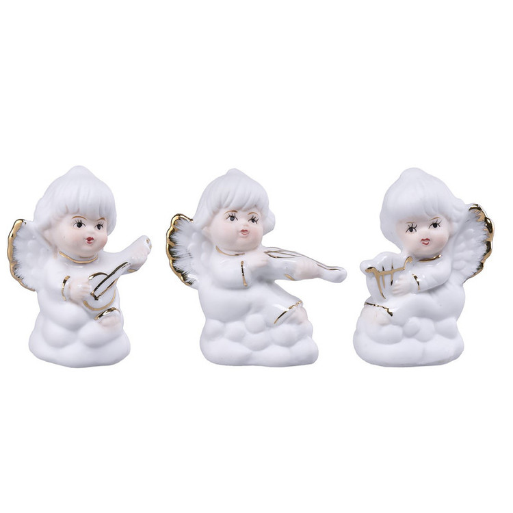 - مجموعه سه عددی مجسمه فرشته - جنس بدنه چینی با آبکاری طلایی - ابعاد هر مجسمه 4 × 8 × 4 - هر سه مجسمه با ظاهری متفاوت