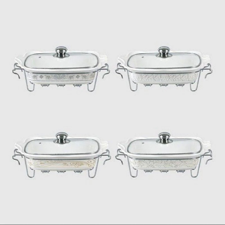 “سوفله خوری چینی بزرگ یونیک کد 8531” ساخته شده از سه قسمت مجزا است. ظرف از جنس چینی در داخل برای قرار دادن غذا. دستگیره درب و وارمر از جنس استیل ضد زنگ درجه یک. و درب شیشه ای. مناسب برای سرو انواع غذا به صورت سرد و گرم. زیر این ظرف دو جا شمعی تعبیه شده و گرمای کافی برای گرم نگه داشتن انواع غذا ها را تامین میکند. بدنه شیار دار و دسته های زیبای این محصول ظاهری بسیار زیبا و مناسب مهمانی ها یا استفاده روزمره دارد.